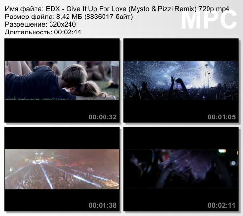 Предлагаем вашему вниманию фильм EDX - GIVE IT UP FOR LOVE (MYSTO & PIZZI REMIX) mp4 на телефон. Формат данного фильма 320X240, поэтому EDX - GIVE IT UP FOR LOVE (MYSTO & PIZZI REMIX) можно смотреть на плеере, PDA, PSP и др. Кино EDX - GIVE IT UP FOR LOVE (MYSTO & PIZZI REMIX) предоставленно для скачивания не с наших серверов, поэтому мы не несём ответственности за выложенные материалы. Все конфликтные материалы могут быть удалены по просьбе владельца.