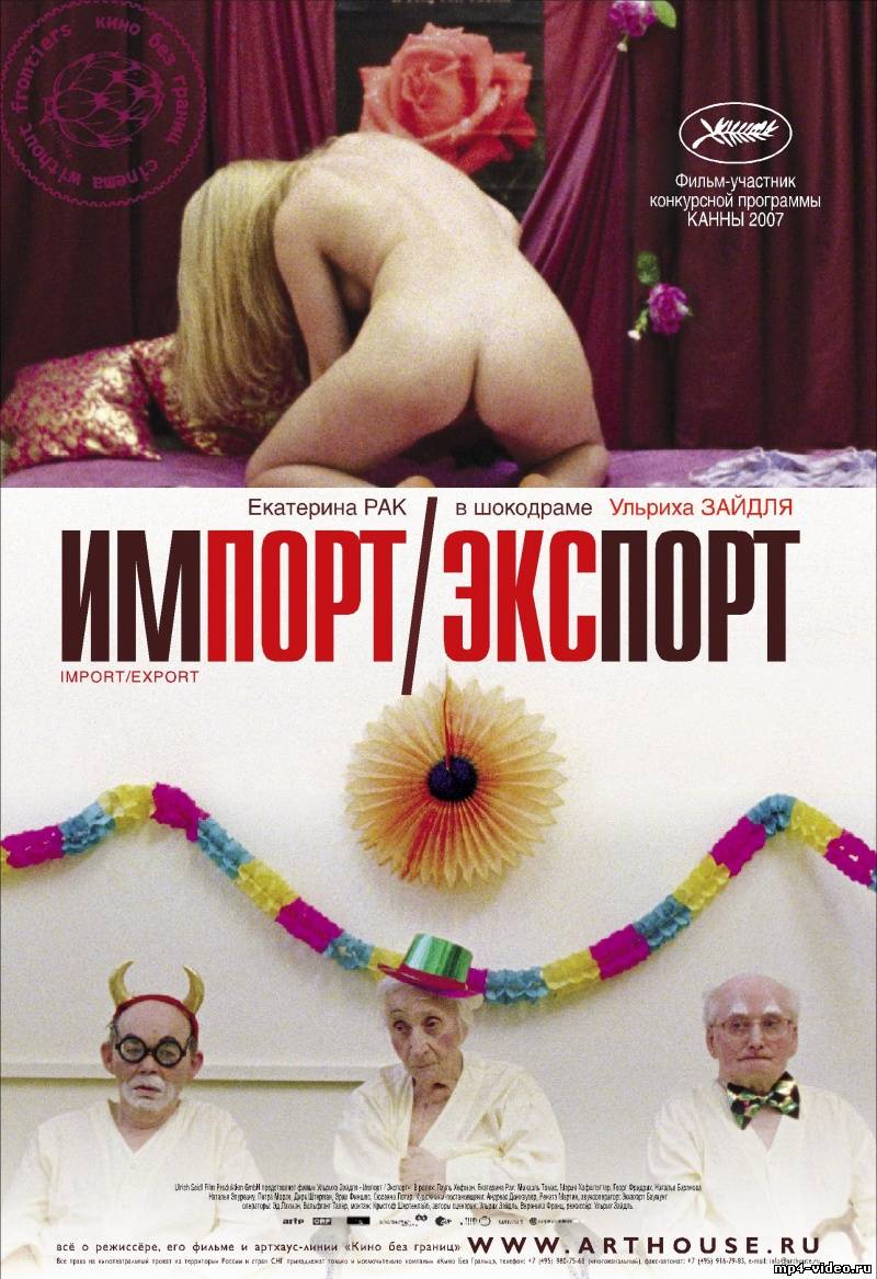 Две отдельные судьбы. Два разных вектора. Ольга, медсестра с Украины, бросает свою семью, чтобы искать лучшую жизнь на Западе и в итоге работает уборщицей в доме престарелых в Австрии. Пауль, безработный охранник из Вены, ищет причину вставать по утрам, отправляется вместе с отчимом на Восток и в итоге оказывается на Украине. Двое молодых людей, жаждущие начать новую жизнь, столкнулись с суровой реальностью. Две истории о поисках счастья и материальной выгоды, о темных сторонах сексуальности и смерти... Название: Импорт-экспорт Оригинальное название: Import/Export Год выпуска: 2007 Жанр: Драма Режиссер: Ульрих Зайдль В ролях: Екатерина Рак, Пауль Хофманн, Майкл Томас, Мария Хофштаттер, Георг Фридрих, Наталья Баранова, Наталья Епуряну, Erich Finsches, Герберт Фритш, Сюзанна Лотар Выпущено: Германия, Франция, Австрия Продолжительность: 02:21:24 Перевод: Профессиональный Формат: mp4 Качество:DVDRip Разрешение:320x240 Размер: 247 mb Золотая пальмовая ветвь Канского кинофестиваля 2007 скачать с LETITBIT.NET